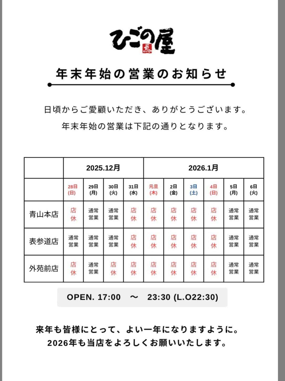来年もよろしくお願いいたします。